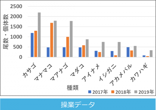 カサゴやマナマコ等が多く漁獲されており、年々増加傾向です。