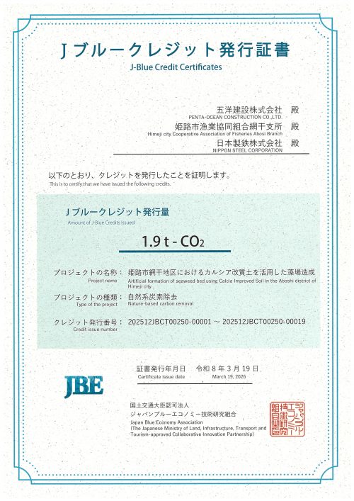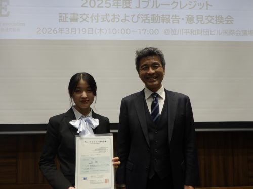 「Jブルークレジット発行証書」を2026年3月19日に受領しましたのでお知らせいたします。