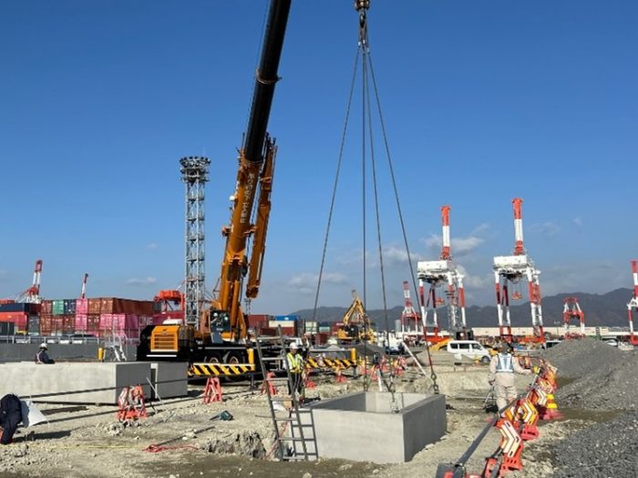 本工事は、神戸港ポートアイランドにて、コンテナヤードの再整備にかかる工事を行っています。