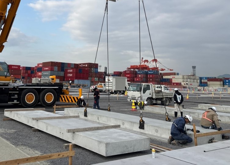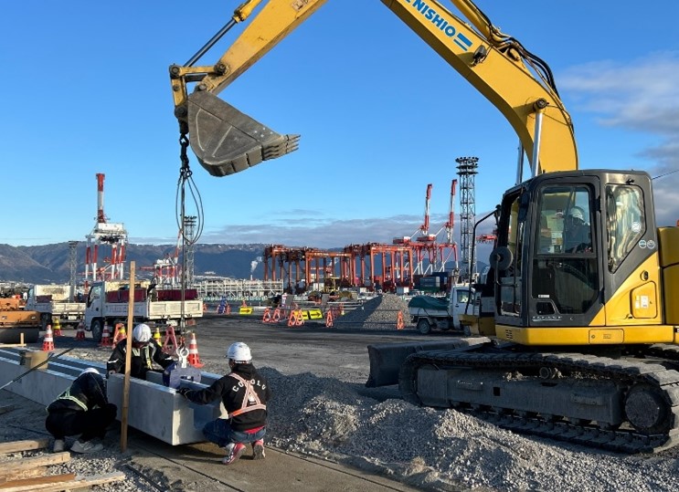 昨年度に引き続き、コンテナヤード新設に向け、コンクリート二次製品の据付作業や、