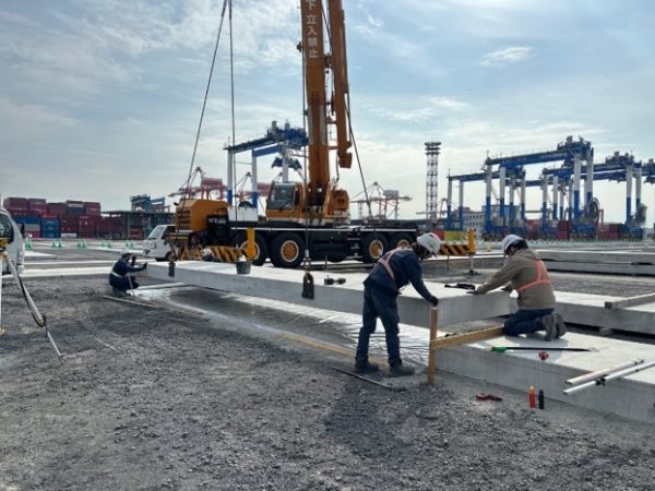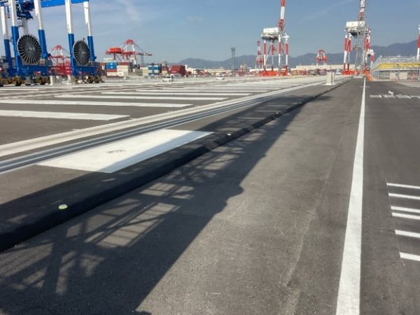 本工事は、神戸港ポートアイランドにて、コンテナヤードの再整備にかかる工事を行っています。