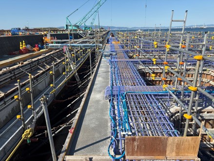 8スパンのうち1スパン目の1ロット目のコンクリートの打設を行いました。