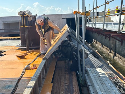 係船柱の設置を行いました。1スパンにつき1基据付を行います。