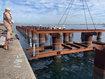 本工事では桟橋上部工の工事を行っております。