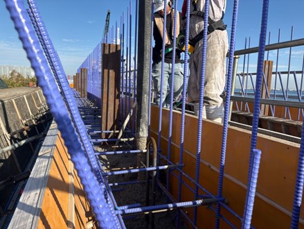 8スパンのうち2・3スパン目の1ロット目のコンクリートの打設を行いました。