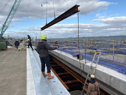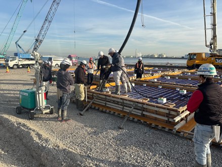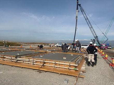 渡版のコンクリート打設、プレキャスト消波板の据付を行いました。
