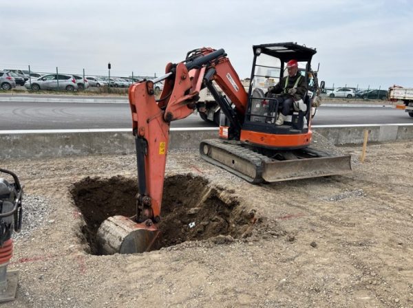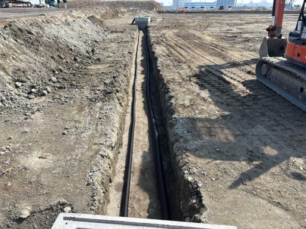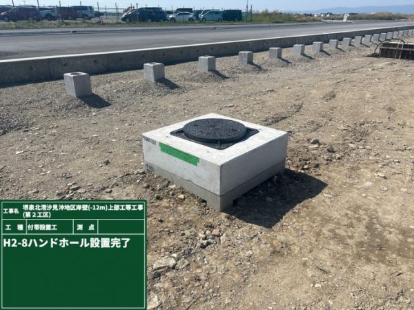陸上にてハンドホールやFEP管の設置を行いました。