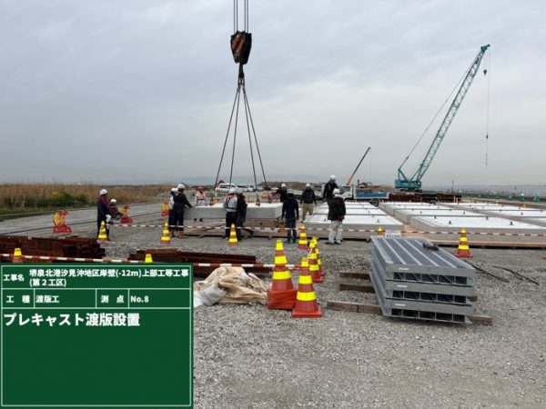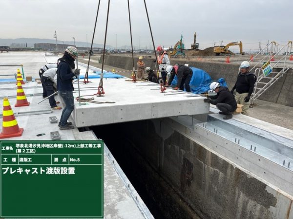 3月は、海上にて8~10スパンの渡版ブロック据付、