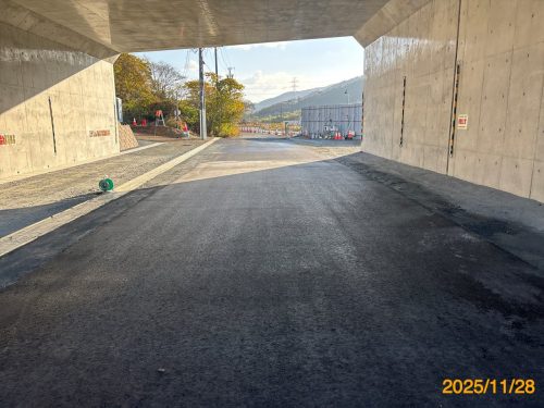 残すは、内部の舗装及び周辺道路の施工になります。令和7年10月頃には、函渠内部を通行できるよう工事を進めていきます。