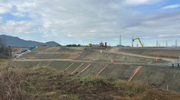 下り線の盛土工事が進んでいます。料金所となる箇所(Fランプ)の盛土は、約7割程度完了しています。