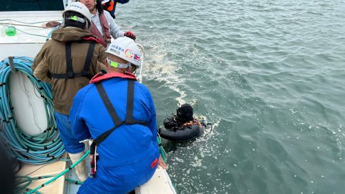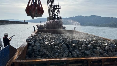 4月は帆布設置(潜水作業)、1層目の捨石投入を実施しました。