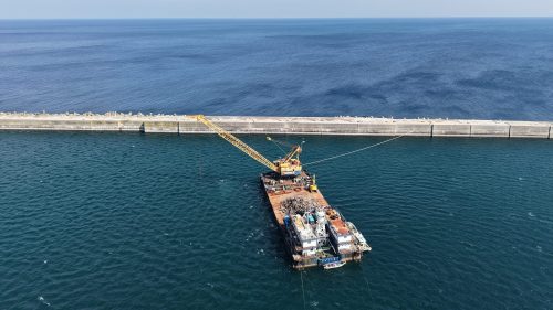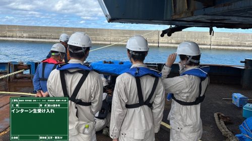 インターンに来ていた生徒も大型船舶を使用した大迫力な施工に心が躍っている様子でした。